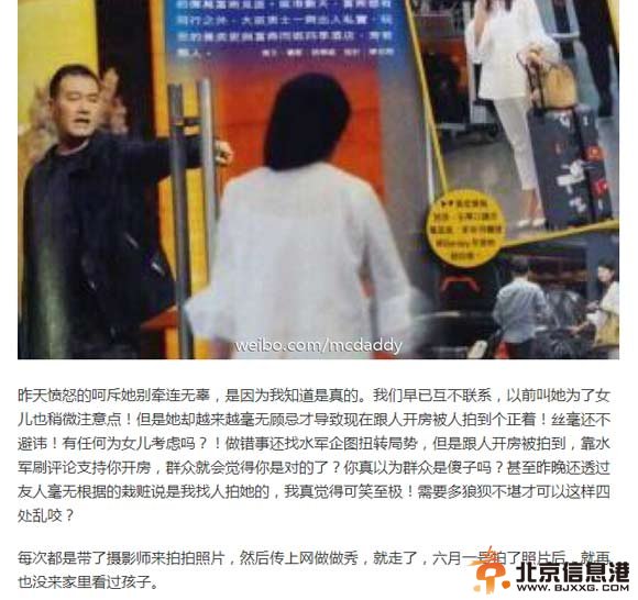 每次都是带了摄影师来拍拍照片,然后传上网做做秀,就走了,六月一号拍了照片后,就再也没来家里看过孩子。 阅读完标题为(黄毅清爆料黄奕跟女儿拍照只为作秀)的文章后,{www.bjxxg.cn}小编为大家推荐更多相关文章,千万不要错过哦! (责任编辑:北京纪事)