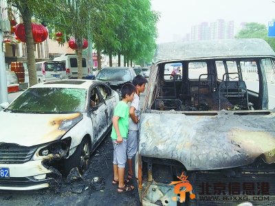 本报讯(记者王琪鹏)昨天中午,在丰台区方庄南路方恒偶寓小区门前,4辆被烧毁的汽车引起了人们的围观。当天凌晨1时许,一辆停在马路最右侧车道的面包车突然起火,并殃及了在旁边停车位停放的3辆汽车。大火被扑灭后,面包车已经烧成空壳,另外3辆车也受损严重,其中一辆价值约百万元的宝马X5几近报废。 尽管起火时4辆车上都没有人,但事故现场足以用惨烈形容。发生自燃的面包车被烧成了空架子,车窗、车灯全都荡然无存,就连座位也只剩下了铁架子。面包车旁边停着的3辆车也遭受了灭顶之灾,一辆宝马X5的车头机器盖被烧成了麻花状,露出了铜线;中间的一辆白色帕萨特则被炙烤得成了“半残”,靠近面包车的一侧留下了清晰的过火痕迹;受损最轻的是一辆Polo,其车尾灯也已经熔化。 “这辆面包车里的主人是来吃夜宵的,结果停了没一会儿就着了。”小区保安告诉记者,面包车自燃发生在凌晨1时许,整辆车几乎一瞬间就成了一个火球,虽然消防车很快赶到,但面包车还是被完全烧毁。“这一场火烧了一百多万。”围观的市民纷纷议论,受损最重的宝马X5恐怕只能报废,其价格在一百万元左右。 小区保安表示,火被扑灭后,3辆“受害车”的车主很快就赶到了现场。昨天上午,车主们又来到现场,但并未将车拖走。“据说是等出具事故鉴定书再协商赔偿的问题。”文并摄 J219 阅读完标题为(面包车突然自燃 引燃旁边三辆车)的文章后,{www.bjxxg.cn}小编为大家推荐更多相关文章,千万不要错过哦! (责任编辑:北京纪事) |