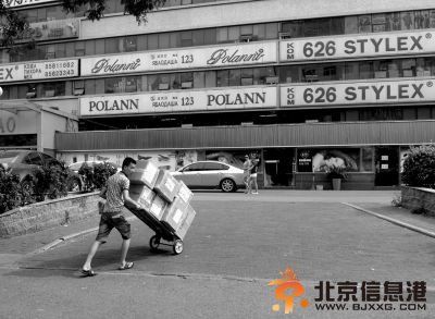 昨天,雅宝大厦外,工人正搬运货物,大部分商户表示未收到市场外迁消息,经营正常。记者陶冉摄 据新华社电 继动批、大红门服装批发市场传出外迁消息后,位于北京使馆区附