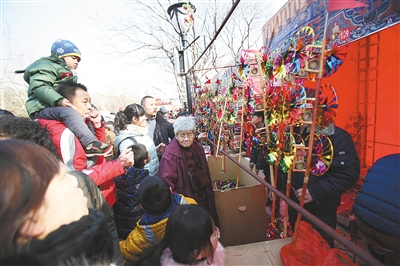 昨日,陶然亭庙会最后一天,卖风车摊位已开始减价销售。新京报记者 王贵彬 摄 昨日,朝阳公园,商贩售卖用作撕名牌的魔术贴。张媛 摄 大观园庙会的游戏区,一位小朋友在认真地操纵着挖掘机。实习生 彭子洋 摄 昨日,陶然亭庙会,一市民玩套圈游戏套中两头“羊”。新京报记者 王贵彬 摄 新京报讯 (记者郭超 李相蓉 黄颖 李婷婷 廖爱玲 实习生刘思维)春节假期倒计时了,昨天有近50万车辆涌入北京。今天是假期最后一天,预计高速路返京高峰出现在下午3时起,各条高速路进京检查站以及服务区将成为车多拥堵的地点。今天也是高速路免通行费的最后一天,预计晚上9时,北京界内高速路恢复发卡。 公路 50万车辆返京现高峰 记者从市交通委获悉,昨日0时至16时,高速公路交通量约为95.37万,比前一日增长约15.88%,比去年同期增长约11.78%。其中,进京约49.54万,出京约45.83万。 昨日0时至16时各高速公路运行总体平稳,但高速公路迎来返程高峰,13时55分开始,京港澳高速进京方向琉璃河南至窦店交通流量大;14时16分开始,大广高速进京方向求贤至西黄垡桥交通流量大。 0时至16时城市路网交通运行平稳。7时至16时平均交通指数2.0,高于去年同期1.4。 春节期间高速路免费时间为2月18日0时至2月24日24时(除夕至初六)。今天24时高速路就恢复收费,北京界内的高速路预计在今天21时恢复发卡通行,但24时前驶出高速的车辆依然享受免费通行政策。 根据以往经验,今天的返京高峰预计出现在下午3时起,京藏高速、京港澳高速、京沪高速今天可能出现局部车流量大,车多地段预计出现在进京检查站以及进京的服务区。北京周边的服务区可能会出现车多以及卫生间紧张的情况。交通管理部门提醒,今日返京尽量提前,不要在高速路收费站外集结等待。 铁路 迎首轮返程小高峰 昨日,北京迎来2015年春运第一轮返程小高峰,北京铁路局共发送旅客67.94万人,同比增加12.04万人,增幅21.5%。其中,到达旅客共42.6万人。 工作人员介绍,伴随春节假期结束,从昨日起,北京返程人数开始增加,昨天今天会成为春节假期的第一个返程小高峰。 当天,北京西站返程客流达18万人次,接近往年返程客流高峰。北京西站分局启动了《春运大人流疏散应急处置工作预案》,当客流高峰形成“大人流”时,按照预案将辖区划分为核心区、缓冲区、疏散区,快速、有效疏导疏散旅客。 在北广场春运期间加开的东西两侧进站口均已关闭,正北方向11个进站口仅开设7个。南北广场和地下通道里,多为以家庭为单位提着行李箱回京的旅客。 出站后,不少旅客选择乘地铁出行。北京西站的地铁7号线、9号线共有四个入口,地铁东北口、东南口和西南口因为靠近出站口,Z型围栏里排满了提着行李箱的旅客,队伍长达十几米。其中东北入口因人流太密集,地铁站工作人员采取临时措施封闭入口,并拿着喇叭,指挥旅客到对面人流较少的西北入口进站。 安保 留安全通道减114摊位 据了解,2015年春节期间,除夕至初七全市举办各类大型活动28项143场次,其中,需要相关机关许可的活动12项65场次,无需许可活动16项78场次,庙会活动7项46场次。 为确保大型活动的绝对安全,北京市公安局设计人员、车辆流线,特别是为留足安全通道,全市各项庙会活动共取消摊位114个,如厂甸庙会中心广场小吃区摊位从原计划的20个减少到14个,拓宽了安全通道,确保群众安全第一的工作要求。 治安总队介绍,各项庙会活动共投入安保力量一万余人次,许可活动相比去年单场次投入力量总数上升了15%。地坛、龙潭两个庙会“点”上投入警力一千人次,两个庙会每日保安员数量同比增加了250人。 对于庙会等重点活动设置足量安检门、X光机和专业安检工作人员,“逢包必检、逢疑必查”,在门区、安检区配备专业防爆安检设备。 商业 “破五”饺子带动叶菜价 北京市商务委昨天公布的监测数据显示,京城120家重点商业服务业企业当日实现销售额6.3亿元,同比增长8.8%。尤其是在昨天,饺子等节令商品供需活跃,“破五”吃饺子的传统习俗,带动相关商品热销。超市里饺子粉、饺子皮、速冻饺子以及肉馅、韭菜、茴香、白菜等馅料销量明显提高。物美、首航国力、牛街清真超市、7-11、福兰德等连锁超市、便利店当日销售增长超过10%。叶类蔬菜价格上涨明显,像茴香、黄瓜等蔬菜价格涨幅均超过了50%,韭菜价上涨7成多。 庙会观察 鱿鱼摊位五天进账25万元 昨日,厂甸庙会、大观园庙会、天坛庙会迎来最后一日。各庙会商家均实行降价促销。 “南来顺庙会五天,最好的一天分别能卖400斤左右的羊肉和羊排,”陶然亭公园南来顺摊位前一负责人介绍,南来顺饭店庙会期间一天最多收入4万多元,五天收入12万多元。 距南来顺不远的售卖拉丁果和台湾轰炸大鱿鱼的也是多年的老商户。 据了解,拉丁果摊位和台湾火爆大鱿鱼摊位同属一家商家。该商家一负责人介绍,拉丁果摊位售卖最高纪录为一天3万多元,鱿鱼售卖最高纪录为一天5万多元。 “因天气原因,有两天拉丁果每天售卖只1万多元,其他时间段还可以,鱿鱼每天约5万元左右,算下来大概有25万元,”该负责人表示,因购买游客较多,有时甚至需维持秩序。 但陶然亭公园靠近东门处一卖风车的摊位工作人员表示,今年剩下三分之一的存料没有卖完。 参加庙会10余年,该风车商贩明显觉得生意不如从前。 “初二、初三因天气影响,每