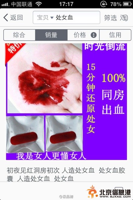 网上竟然有店铺卖处女血,看买家评价三观已毁,整个人都不好了
