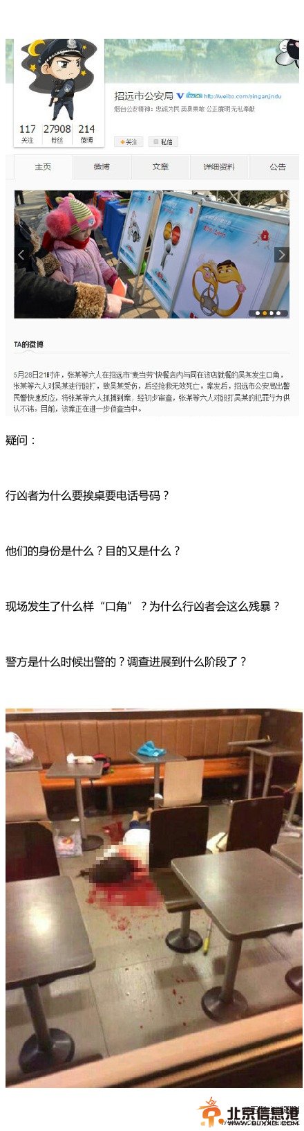 如果我在现场会怎么办?如果我不想给陌生人电话怎么办?山东招远,在麦当劳吃饭的女子在朋友圈说“遇到了疯子”,随后被人殴打,打人者高喊“你们谁管谁死”,当晚女子被殴打致死。 @善良的老猫来了 说,死的是我家亲戚。今天尸检了。她是一个七岁男孩的妈,家里公认的好媳妇,好妻子,今年三十几岁。