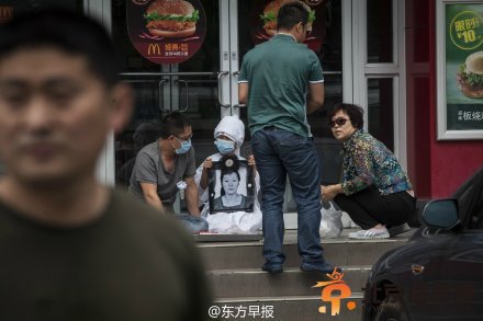 “招远麦当劳血案”死者吴硕艳头七 亲属麦当劳门前祭奠图片