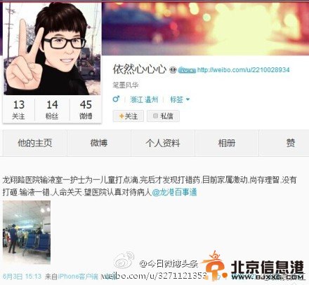 昨天,温州@依然心心心 :龙翔路医院输液室一护士为一儿童打点滴,打完后才发现打错药,目前家属激动,尚理智,没有打砸。输液一错,人命关天。据院方证实,院方负有不可推卸的责任,对出错护士扣发奖金、记录在案,作为年终考评依据。苍南护士输液乌龙,你怎么看?