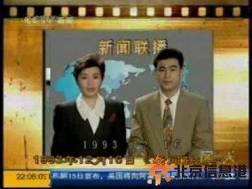 1993年,李瑞英张宏民主持《新闻联播》画面。