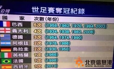阅读完标题为(台电视台转播世界杯 国家和国旗弄混(图))的文章后,{www.bjxxg.cn}小编为大家推荐更多相关文章,千万不要错过哦!