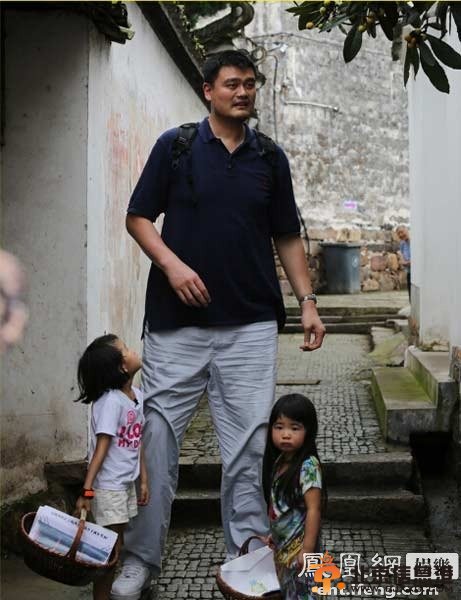 《爸爸2》姚明剧照 大家好,我是村长李锐!在今天的《村长日记》里咱们继续来聊一聊咱们的“移动长城”——姚明。话说上次讲到他的“神预测”后无数粉丝纷纷留言表示“好赞”,要求村长能提供给多点小巨人的爆料出来。这不,咱今天就来聊聊姚明的瓜子脸! 姚明录制的那天,咱们的摄像拍了一天后脖子都直不过来了。我就数落老谢啦:“你吧,拍姚明你起码得派个一米七八的摄像吧,可你偏偏还配个一米五几的兄弟,这不成心让人家难过么?况且,这种跟拍高度差还会带来一系列的构图问题。 我一直相信大家所看到的姚明,不是姚明的真正形象,因为所有呈现在相机里的构图一定都是被仰拍的。所以我建议哈,有机会一定要还姚明一张正面照,因为每次从底下往上拍,看到的都是他的宽下巴对吧,换个角度,说不定咱还真能发现——嘿,真姚明,瓜子脸!
