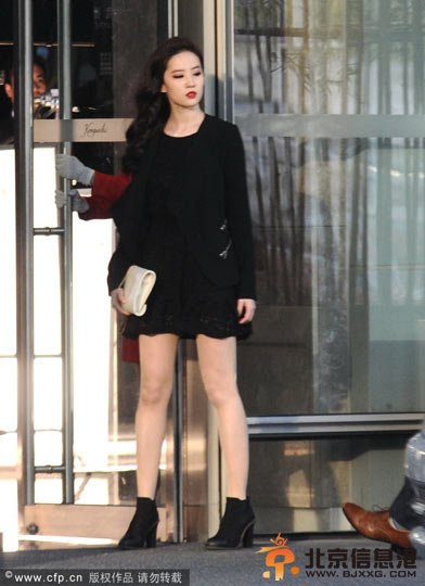刘亦菲浓妆艳抹拍戏 变身时髦女郎(图)