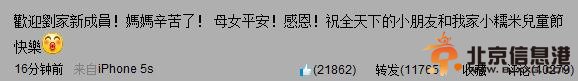 刘恺威微博 杨幂近期晒照 恰逢6.1儿童节,杨幂宣布生下一个女儿,重6斤多,母女平安。刚当上爸爸的刘恺威也十分兴奋,据其微博,女儿的小名叫做小糯米。 据悉,杨幂怀孕后