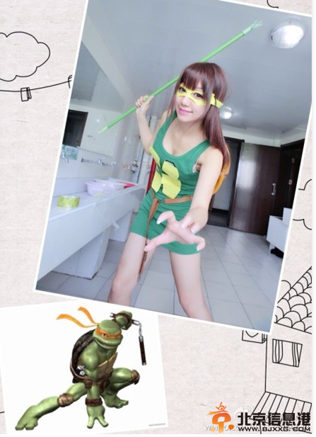 首都经贸女大学生忍者神龟装扮 近日,由首都经贸大学某女生创意拍摄的系列忍者变装秀走红网络。就地取材,简单步骤,加上本身的天使脸庞,大学女生忍者装扮不仅引发了网民的疯狂转载,更成为美女“高智商”的典范。酷劲十足的造型,独特的创意征服了众多粉丝的心。网民纷纷以“忍者校花”称赞,并鼓励其推出更多作品。其真人版《忍者神龟》造型,只用简单的彩色纸做眼睛以及胸贴,脸盆做盖,俨然成为最美真人版忍者神龟。 据悉,女生因闲暇时间把玩手游,从《忍者必须死2》游戏中取得了灵感,于是在六一期间突发变装创意,并拍摄变装步骤,发布于个人微博,没想到一炮而红。在发布首套变身创意后,因许下“转评够多,就奉上更多忍者造型”的承诺,在一炮而红后忍者校花再次发布多套变装套图,同样简单的取材和步骤,在不失恶搞之余为大家带来了更多的欢乐。 更多网民给予了这位忍者校花更多积极的评价,大赞忍着美女的创意无价。如此简单的工具和服装,但模仿的确有模有样。这不是靠脸蛋就能完成的,还需要超强的动手能力和空间想象力。忍者校花的走红,让大家看到美丽是无法被“廉价”所遮挡的,虽然取材简单到可谓简陋,但依然让大家对她留下了深刻的印象。难怪有游戏玩家称:“尽管忍者必须死,但肯定不希望是她。”