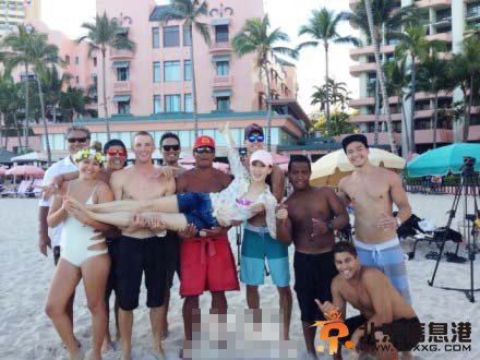 胡静夏威夷度假 被8半裸男子“众星捧月”(图)