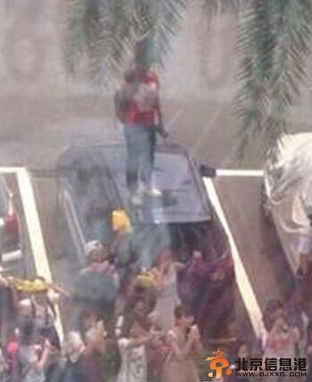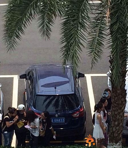 粉丝为睹EXO真颜上他人车顶 车顶被踩出大坑(图)