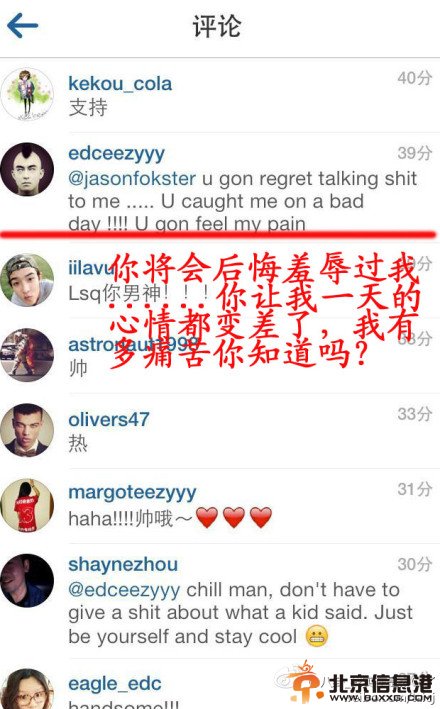 阅读完标题为(陈冠希INS网友留言丁丁像牙签 陈冠希微博号召粉丝人肉网友 事件始末)的文章后,{www.bjxxg.cn}小编为大家推荐更多相关文章,千万不要错过哦! (责任编辑:北京信息港) |