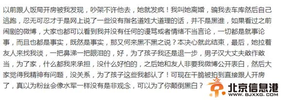 黄奕夫妻昔日恩爱照 据香港媒体报道,近日,黄奕撇下丈夫与女儿独自前往香港,并与一名何姓亿万富商见面,留港数日期间,富商一直陪伴左右,甚至旁若无人的一同进出四季酒店。随着该消息曝光,黄奕老公黄毅清昨晚在微博发飙暗指黄奕买通记者模糊焦点。今日黄毅清再度发声发表长微博阐述与黄奕之间的生活细节。 据黄毅清微博内容爆料黄奕与人开房不止一次,她已经不是你们以为的那个她了! 以下截图黄毅清微博内容: 以前跟人饭局开房被我发现,吵架不许他去,她就发疯!我叫她离婚,骗我去车库然后自己逃跑,忍无可忍才于是网上说了一些没有指名道姓大道理的话,并不是黑谁,如果看过之前闹剧的微博,大家也都可以看到我并没有任何的谩骂或者情绪不当言论,一切都是就事论事,而且也都是事实,既然是事实,那又何来黑不黑之说?本决心就此结束,最后,她拉着友人来找我谈,一把鼻涕一把眼泪的,好,为了孩子我还是退一步,男子汉大丈夫敢作敢当,为了家,什么都我来承担,没什么好怕的,之后她和友人非要我微博公开表白,然后大家觉得我精神有问题,没关系,为了孩子这些我都认了!可现在干脆被拍到直接跟人开房了,真以为粉丝会像水军一样没有是非观念,可以为了你颠倒黑白?