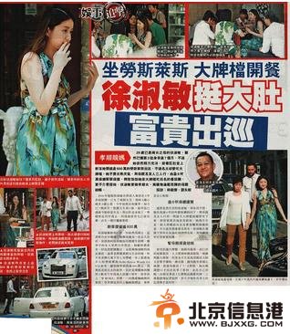 徐淑敏坐劳斯莱斯出巡 据香港媒体报道,29岁已是两女之母的徐淑敏,虽然已怀第3胎身孕逾7个月,不过她依然精力充沛,挺着巨肚坐上新落地价值逾600万的劳斯莱斯出巡,不过名太却爱食大牌档,她不畏炎热天气,与母亲及友人三人行,由逾6尺高保镖紧紧保护,兴致勃勃地坐大牌档食出名的番茄面,更不介意搭桌。徐淑敏更做孝顺女,为购物满载而归的母亲结帐。 2006年港姐徐淑敏自与商人黄浩在4年多前结婚,已生了两个女儿,4岁心瑶及2岁心柔,今年初再宣布怀孕,如今已7个多月,快将又生第3 胎,她早前已透露今胎亦是生女,所以肚皮未收工,准备要追到儿子为止,因为她曾答允已故长辈,必生一个儿子继后香灯。 新车价值逾600万 徐淑敏挺着巨肚,昨日她与母亲及一名友人出巡,化淡妆的徐淑敏保持靓样生招牌,怀孕中的女人果然分外漂亮,她虽快将产女,但也没肥肿难分,自从与无线解约淡出幕前,过着妈妈兼阔太生活的她,昨日在炎热天气下穿吊带裙,坐上新落地没多久的劳斯莱斯Rolls-Royce Wraith 6.6V12 新车,据知该车价值逾600万元,为黄浩送给太太的新车,估计是奖励他再怀第3胎及今年为两人结婚5周年,该车挂上“W BORS”车牌,一向热爱蝙蝠侠的黄浩,在车牌底亦印上蝙蝠侠标志,果然是忠心粉丝。 逾6尺保镖护驾 过着富贵生活的徐淑敏,却吃得平价,她在高逾6尺的外籍保镖陪同下,与母亲及友人行到一间露天大牌档就求其坐下来,就算要与其他食客搭桌,她都不介意,该大牌档最出名是番茄面与丝袜奶茶,不少游客都会慕名而至。徐淑敏在盛热下照坐在街边吃得津津有味,其保镖就坐在旁紧紧保护。 帮母亲扫货结帐 吃完街边大牌档,她与母亲等一起行到街尾服装店,主力帮老妈拣高跟鞋,她虽然大腹便便,但完全不介意为母亲帮手拣鞋、拣首饰,让母亲坐着细心挑选,最后母亲买了7、8 对鞋,她出动讲价口才向店员拿了折扣,并由自己结帐,由保安拿着3大袋物品满载而归,之后她发现记者影相,亦大方地坐在车上向记者挥手讲拜拜。