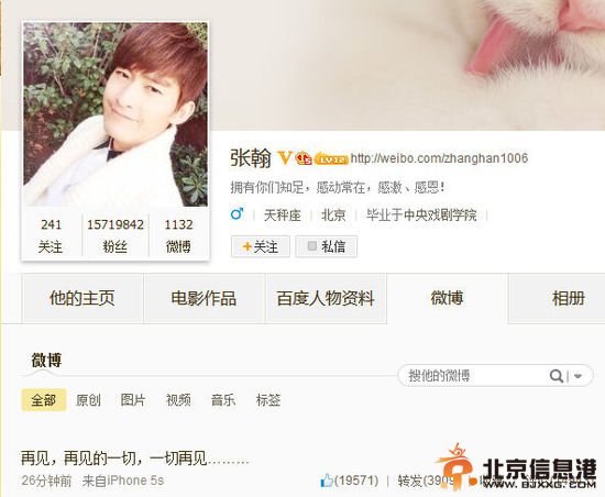 张翰微博截图 14日凌晨00:05分,张翰在微博上发布:“再见,再见的一切,一切再见………”,似乎是彻底与郑爽挥手说再见,想忘掉这段恋情。短短10分钟时间,网友评论已超过7000次,转发1400多次,“放弃该放弃的”、“啥也别说,我们在!”,也不乏粉丝留言,希望“追回来”。 6月9日,郑爽在上海连续出席了《抓住彩虹的男人》及《美人私房菜》两部剧的发布会。在媒体不断追问下,郑爽接过话筒承认自己已与张翰分手,她说:“分手是我单方面公布的,我们没有商量过,或许也是我不自信的地方。以前很多人说我只和他拍戏,我在工作方面的成绩不太多。而且没有工作的时候,越来越不自信,包括我去整容,我有很多负面的情绪,对方也离我越来越远。”郑爽透露,自己目前工作满档,希望借此疗伤,“任何人都要更努力地让自己幸福。”并替张翰澄清“没有第三者这回事,他是很专一的人。”郑爽坦言,自己对这段感情已经努力了,但是在几年的相处过程中,越来越不自信,包括去整容,单方面宣布分手都是因为自卑。