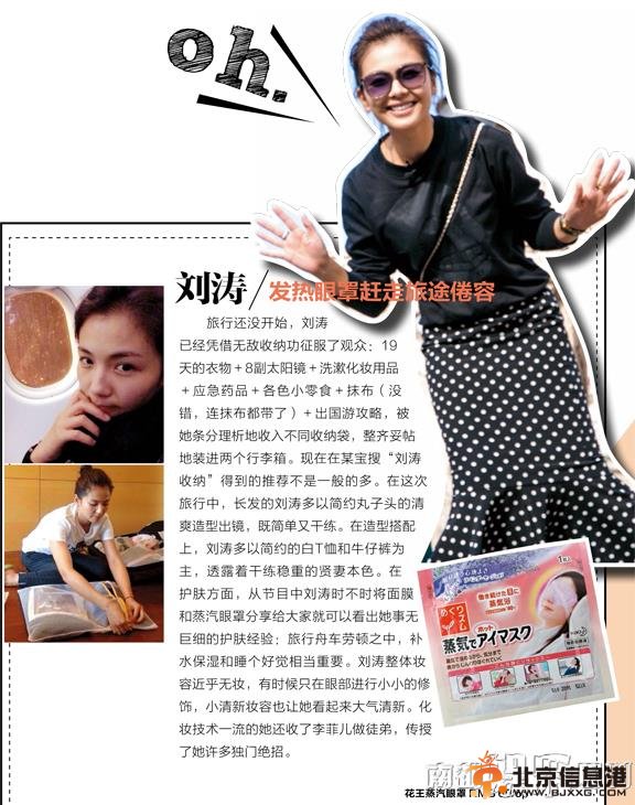 李菲儿 随着《花儿与少年》的热播,“少女心”许晴,“贤妻”刘涛、“迷糊蛋”李菲儿的形象深入人心。除了人气日益高涨之外,“花少团”们的出游造型也成了热议的焦点。节目中不仅能看他们窘态百出的欧洲游,同样也能学到不一样的美容美妆技巧。看各位姐姐们在旅行中有怎么样的独门秘诀,旅行中没有造型师怎么办?长途奔袭的旅行中如何保养皮肤?让花儿们告诉你。 采写_ 本刊记者蒋梦瑶 南都娱乐X李菲儿 迷糊花儿保养不含糊 跟李菲儿约采访时,我们希望她可以提供一些旅行时自己拍的照片。结果妞儿很无奈地表示,节目中不是有一幕她的粉色双肩包被偷了么,照片神马的也就一起被偷走。就是这么一个迷迷糊糊的妞儿,却很坚定地向我们表示,就算在艰苦的旅途中,也不能放弃治疗,爽肤水、眼霜、精华、乳液,能不省就不省,也正因为这么认真地保养皮肤,所以她在“花少”中基本都是素颜出境。 “保养程序,能不省就不省” 南都娱乐:这次的欧洲之行当地的环境如何?有做什么样的护肤措施? 李菲儿:当地早晚的温差特别大,白天很容易出汗,晚上又很干。旅行中条件并没有那么好,也没有时间和精力,所以最基本的就是每天敷面膜。在节目里我没有化妆,因为没时间,再加上后来化妆品都丢了,所以只是每天涂护肤品,涂防晒。还有就是多吃肉,因为含有大量的胶原蛋白(笑)。 南都娱乐:这次旅行当中碰到美容护肤最大的问题是什么? 李菲儿:没有充足的睡眠时间,其实做面膜都不如睡一个好觉。还有就是防晒,可能是到了欧洲水土不服,平时在北京,涂防晒霜之后再涂东西都没什么问题。但是在那边涂了防晒再涂东西,就油腻腻,整个感觉就很脏,也没办法化妆,一周左右我就晒黑了。 南都娱乐:后来怎么解决这个问题? 李菲儿:不太好解决,除非每隔四个小时就涂次防晒,不然真的会晒黑。这次为了防晒,买了倍数比较高的,但倍数越高,就越容易油腻。建议大家在室内能涂BB霜隔离霜就不要涂防晒。如果太阳很毒,紫外线很高,就涂倍数低的防晒在脸上。 南都娱乐:旅行大抵都很匆忙,你会简化护肤步骤吗? 李菲儿:不会简化。晚上卸妆要卸得干净,可以一边敷面膜一边做其他事情。之后用深层强化吸收的水,再是爽肤水、眼霜、精华、乳液,能不省就不省。 “没有造型师,我有发带啊” 南都娱乐:除了在护肤上面的诀窍,旅行中的造型有怎么样的小设计? 李菲儿:因在没有化妆师跟着,几乎没有弄头发。在比较紧急情况下基本上用发带。发带可以解决很多问题,穿得单调,一用发带整体性就强了。 南都娱乐:你平时对发带有偏好吗?会怎么搭配这些发带? 李菲儿:我特别喜欢发带,还有各种发卡,熊耳朵、猫耳朵、蝴蝶结等各种造型。如果身上的衣服是很花,发带就要纯色。衣服很素,那发带就可以相对花一点。掌握这两个技巧就不会出大错。 南都娱乐:出门旅行,你有旅行包和化妆包减负的诀窍吗? 李菲儿:旅行箱的话,我是用的压缩袋,把衣服压很扁,这样能省很多空间。护肤品的话就带小包装,我比较容易丢东西,所以护肤品都会带两套,其实旅行装看起来很小,但能用蛮久,带两套也没有占很多的地方,面膜没有办法,能带多少带多少。 南都娱乐:这次跟几位姐姐一起出去旅行,有跟她们学到有关造型或者妆容的技巧? 李菲儿:有,像涛姐就收我当徒弟,她想快点把我嫁出去,会教我干活。我现在收拾东西比以前厉害很多,算是潜移默化吧。像我平时完全不化妆。但有一次去看比赛,涛姐就说不可以这样,就给我化妆。她还告诉我晚上参加聚会一定要涂腮红涂亮的眼影,这样气色会好很多,不然看起来会惨白,尤其是晚上在灯光特别强的地方。造型的话,晴姐喜欢围巾和打底裤。这两个东西很简单,又不占地方,搭配起来会让整体变得非常棒。可能你换了打底裤,整体感觉就很不一样,围巾还可以搭配颜色,而且这两样单品又柔软保暖,出去旅行真的是可以多带。