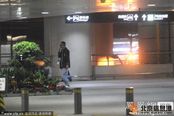 文章低调现身机场全程沉默 出闸马上点烟(图)