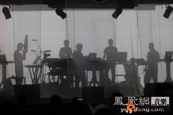 超级市场现场 大概没有太多人会专程去看一场电子乐演出。迪吧嗨曲和汽车发烧DJ大碟残忍地拉低了电子乐的逼格,那些不太适合跳舞的电子乐又可以一个人在家里听,那么,为什么要去现场?面对这个问题,你或许可以回答:因为超级市场。 6月14日晚,超级市场新专辑《Blackeclipse墨蚀》首发专场在愚公移山完美落幕。对于田鹏以及台上所有和他一样低调的乐队成员来说,这是他们罕见的和乐迷直接交流的机会,为此他们做了极为用心的准备,从设备到舞美到整体视觉概念,无一不精无一不严,然而这些努力事前鲜有人知,只有那晚经受了现场洗礼的人才由瞠目而赞叹。对于乐队来说,这也就够了。他们来去匆匆,音乐挥发在空气里,好像什么都没留下,又好像置换了一整个世界,从此一切都不一样了。 从头至尾,我们都陷在黑暗和它所映衬的光影里。合成器,电子鼓,MacBook Pro,程序,旋钮,以及辐射、震荡、闪烁、律动着的声音颗粒,绵延着的各色声波,碎片化的人声,全都酝酿在舞台前方白色半透明的幕帘之后,穿过其上的投影画面,溢满现场的每个角落。这不是跳舞音乐,它以节奏为动力,推进情绪,展开画面,探索世界,很少以摇晃听众为己任。这个黑暗封闭的声音熔炉里,台上的发声设备和四壁、桌椅以及我们的身体等一切可以反射声音的存在,共同构成了一个时空转换装置。那些被扭曲、拉长、拧紧、折叠的声音素材,提示这里有着畸变的力场、多维的空间;幕帘上所投下的抽象人影和闪烁的网格,则形象化了时空旅行的过程。我们是不是该忘了这是什么音乐?忘了它是电子乐还是其他什么劳什子,把它看成一种单纯的能量,它发动了这台时空装置,请把自己放心交给那个神奇的未来。 在音乐的视觉化转达上,国内没有人比超级市场做得更好,现场的动态投影完善并升华了整场演出的概念。它们和音乐互相诠释,不必看懂或听懂,只需感受灵魂出窍的飞升体验。蓝色光焰,外星生命,爆炸的超新星,随节奏闪烁的线条和光点,标本式地旋转或奔跑着的人体,如雪般飘落的汉字,都一一重合在幕帘后乐队成员的剪影上。黑暗的现场,灿烂的气象。 事实上,超级市场始终致力于为电子乐赋予人性,尽管他们的歌词在新专辑中变得前所未有地少,但同样明显的是,乐队中加入的原声乐器吹奏和电音水乳交融,完整有机的歌曲结构仍旧暗藏着强烈的情绪场,直至倒数第二首曲子,曾经的与非门乐队主唱张敬亲自朗诵了自己的诗作《清白》,用语言做出了最直接的表达。于是一切不仅仅是0与1,音乐逐渐向我们展开一个宏大的景观,同时向着混沌的潜意识下潜,在恰当的时候,使我们元神归位。 在移动互联网的时代,我们却并不经常听到“超级市场”这个名字。他们从未刻意利用社交网络经营自己,他们是罕见的遁世极客,只用音乐打通未来。