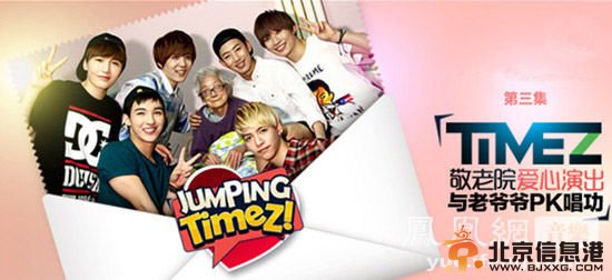 TimeZ团体真人秀节目 昨日(7月10日),由北京捷特联合文化传媒有限公司与韩国CJ E&M联手打造的时光系全民优质偶像男团TimeZ的团体真人秀综艺节目《Jumping TimeZ!》第三集温暖上线。为了回馈大家一直以来对TimeZ的爱与支持,六位阳光少年组建爱心应援团,用实际行动表达他们对大家的爱和感谢。 节目中,TimeZ一会变身咖啡小弟,为曾经帮助过他们的工作人员外送咖啡;一会又化身为感情治疗师,安慰失恋的女生。在赶去安慰失恋女生的路上,六位成员紧急商讨拯救失恋女生的作战方案,每个人都拿出了自己的小妙招。在制定安慰方案时,韩国成员李炯柱“自恋”获得“最受异性欢迎”的称号,而另一位韩国成员金成焕则大呼出生以来二十二年间的“委屈”——从来都没有谈过恋爱,引发一阵爆笑。应援的最后一站,TimeZ带着青春洋溢的舞蹈和歌曲来到北京某敬老院。无论是给老人们表演歌舞,还是和老人们一起聊天,六位阳光少年都用心的与老人们相处,尽其所能的为老人们多做一些事情。虽然只是短短一个的下午,但是TimeZ用他们真诚温暖的笑脸和阳光活力的演出,为老宝贝们送去了无限的欢乐。节目的最后六位成员还分享了自己的成长故事,直戳观众泪点。 TimeZ说:“感谢的话总是说,但我们觉得这远远不够,我们希望能通过实际行动去表达我们的感谢,回馈我们的爱给大家。”褪去明星的光环,TimeZ怀着感恩之心,用实际行动表达他们的感谢之情。无论是简单而平凡的咖啡外送、倾听的“垃圾桶”,还是暖暖的爱心表演,他们都用心的付出着、感恩着,他们的“谢谢”不只停留在“嘴边”。 《Jumping TimeZ!》开播以来受到众多粉丝朋友以及业内人士的褒赞和支持,收视率更是节节攀升,截至昨日第二集单集播放量再创新高——210万次。希望大家每周四持续关注《Jumping TimeZ!》,与TimeZ一起欢乐过夏天。
