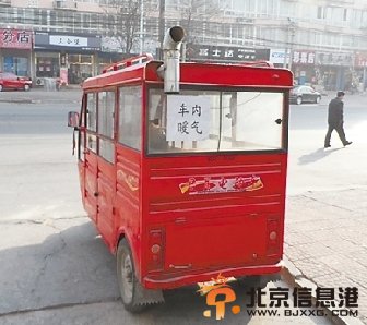 最近,房山区城关镇街道的不少摩的,选择在车头放置一个煤炉,烟道穿过车厢。这样一来,车厢内就暖和一些。摩的司机纷纷打出“车内暖气”的宣传招牌。范保明 文并摄