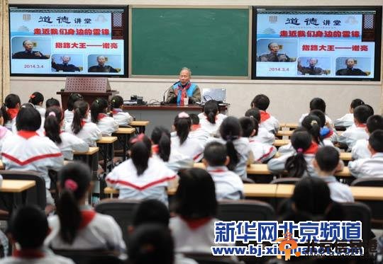 当日,北京府学胡同小学举办“走近我们身边的雷锋”活动,邀请85岁高龄、义务指路10多年的谢亮为学生们讲述自己的故事。退休后的谢亮从2001年起,除生病外,每天坚持在东直门交通枢纽给人指路,被人们尊称为“指路大王”。