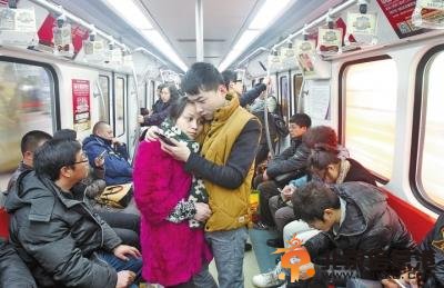 从天安门回来,冯莹依偎在海斌身上,坐在地铁上犹如穿梭时光隧道。