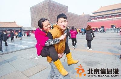 冯莹转了一会儿,感觉有点劳累,杨海斌便背着她在天安门广场四周转悠。转遍了四周约2公里的路程,直到中午,才回到住处。