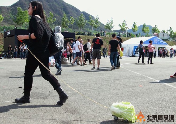 北京迷笛音乐节遛白菜 遛白菜活动由行为艺术家韩冰发起