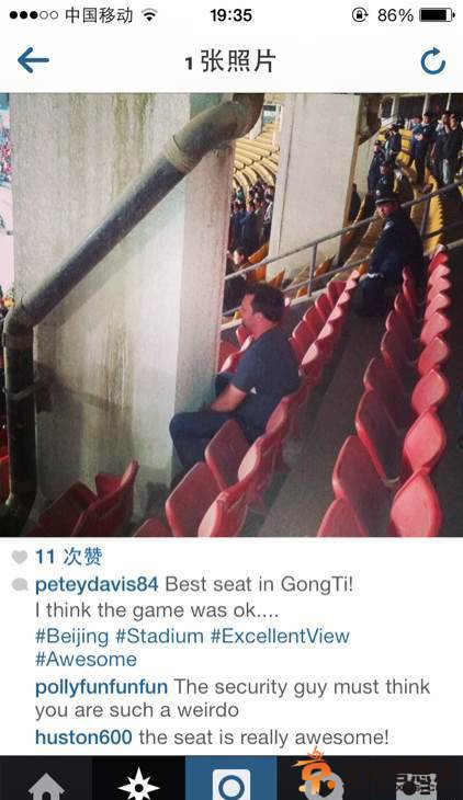老外发照片称是北京工人体育馆的最佳座位,这老外太贫了! 【哈哈哈,这老外太贫了