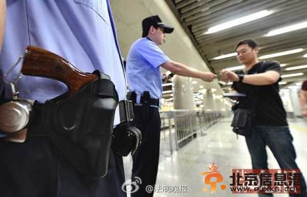 @法制晚报【天安门附近5地铁站 民警首次持枪巡逻】从今日起,北京警方首次在北京地铁一号线西单至东单五个地铁站(沿途有天安门西、天安门东、王府井3站)持枪巡逻。天安门站派出所所长刘勇介绍,目前反恐形势严峻,根据公安部、北京市公安局要求,地铁站安全标准大幅提升。(记者张雷)
