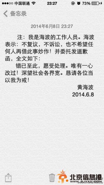 本报讯(记者王蔷 安然)昨晚,因嫖娼成为舆论焦点的演员黄海波委托工作人员在其微博上发表道歉声明,表示“错已至此,愿受处理”,不复议、不诉讼。有媒体对此报道时称黄海波已经获释。今天上午北京市公安局对此予以辟谣,称黄海波未被释放,仍在收容教育中。 5月15日,演员黄海波因嫖娼被拘留15日。在拘留期满后,又被收容教育半年。此后有消息称,其家人委托律师准备就此提出行政复议、行政诉讼。 6月8日23时27分,黄海波的新浪微博发表一则声明:“注:我是海波的工作人员。海波表示:不复议,不诉讼,也不希望任何人再借此事炒作!并委托发道歉函,全文如下:错已至此,愿受处理。唯有一心改过!深望社会各界宽。恳请各位当以我为戒!” 黄海波的道歉声明发表后,网友们纷纷留言:“黄海波真汉子”、“好好悔改”等。但有媒体在报道此事时称黄海波“已获释”,引发舆论一片哗然。 今天上午记者从北京市公安局获悉,黄海波并没有被释放,仍在收容教育中。 此前有消息称,北京莫少平律师事务所的律师莫少平和马纲权已正式接受黄海波家人的委托,对黄海波因嫖娼被收容教育6个月一案,准备提出行政复议、行政诉讼。律师当时还表示和黄海波的家人已经签订了保密协议。记者今天上午联系到了莫少平律师,问是否解除了此前的委托,莫律师表示“现在不便披露”。但莫律师明确地告诉记者:“黄海波现在还没有被释放。”至于黄海波是否会提前释放,莫律师称“希望如此”。 J178 J060 阅读完标题为(警方辟谣:黄海波未被释放)的文章后,{www.bjxxg.cn}小编为大家推荐更多相关文章,千万不要错过哦! (责任编辑:北京纪事) |