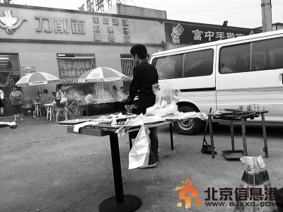 街边烟熏火燎的露天烧烤摊。 近日,有不少读者向本报来电话反映,今年夏天路边烧烤的现象较往年有所减少,但是一些地方还是有露天烧烤、室外制售食品的现象。他们想通过本报呼吁一下,为了首都空气质量和市民健康,餐饮营业者要遵守法规,市民要自觉抵制,执法部门尽职尽责,让露天烧烤无容身之地。 5月1日,《北京市消夏露天餐饮经营管理暂行办法》(以下简称办法)开始实施,但是记者在走访中发现,部分城区还存在露天烧烤的现象。 饭馆外架烤炉 两百米路烟熏火燎 6月3日,记者来到东南二环外的左安路,这条路呈东西走向,西连东南二环,东连东南三环。由西往东步行一百多米处,路南侧沿街开了很多饭馆、小卖铺、超市。在京客隆超市门口,一个店员在烧烤摊前汗流浃背地操作着,相距不远处的另一家饭馆门口,一名店员正在烤炉上一边翻烤着,一边撒着各种佐料,烧烤形成的油烟缭绕半空。 顺着这条街继续往东走,路北侧是一个叫做弘善家园的住宅小区,路南侧沿街基本上都是商铺和饭馆。每隔一段距离半空中弥漫着一团团的油烟。在其中一家饭馆门前的烧烤炉旁,立着一个大电风扇,将烧烤产生的油烟吹响空中,还有店员拿着一把大扇不停地煽动。 记者在这条两百余米的路上粗略数了一下,大概有十余家烧烤摊,几乎每家饭馆门前都露天摆着几张桌子,一来客人,服务员就招呼客人坐在座位上。在其中一家饭馆,服务员给记者拿来两份菜单,一份是炒菜,另一份是塑封的烧烤单,单子上列着十几种烤串,负责卖烧烤的服务员告诉记者,他们租的饭馆门前的摊位,已经摆了好几年了。 在丰台区嘉园路公交站嘉园三里北站旁,一家饭馆门前搭起遮阳篷,长条形的烧烤炉冒着冲天的烟雾,炉子边架起的风扇呼呼作响。记者询问一位服务员,他说白天不能在外边烧烤,只有晚上才摆出来,一般都营业到晚上十一二点钟。 根据《北京大气污染防治条例》规定,餐饮企业未安装净化装置随意排放油烟的,最高可以处罚2万元。记者看到的这些烧烤摊,没有一家安装油烟净化设备,露天烧烤的油烟直接飘到了空中。 住宅小区周边 支个烤炉就开张 记者在采访中还发现,除了临街饭馆门前摆出露天烧烤摊和餐桌外,有一些游商也经营起了路边烧烤摊和大排档,他们找个路边的空地或者占用人行道,拉根电线挂上灯泡,支几张桌子,架起烧烤炉买卖就开张了,这样的露天经营不符合《办法》中第一章第七条的规定:消夏露天餐饮经营主体应为依法设立的餐饮企业。游商不但没有相关的餐饮经营手续,食品的卫生和质量都无法保证,这些违规经营的摊点大多摆在住宅小区周围和繁华路段街边。 东南二环外弘善家园住宅小区的街心花园旁边,就有几处游商烧烤摊,其中两处烧烤摊紧挨住宅楼,烧烤架旁放着着各种烤串,地上摞几箱啤酒,因为临近大型住宅小区,夜幕降临,消夏乘凉的市民三三两两开始光顾。 不仅如此,沿着街心花园的道路两边,摆在三轮车上的木炭烧烤、铁板烧烤也扎堆儿经营。一位居民说,他和朋友几乎每周都要来楼下的烧烤摊喝啤酒吃烧烤。一位照看孙子的大妈说,露天烧烤烟熏火燎的,肉串肯定不会干净,她从来不吃。 马家堡路和角门北路交叉的十字路口西北角,在一团浓浓的油烟下面,一个露天烧烤摊的几张桌子前坐满了食客,烧烤炉后边墙头上挂着“生活美景菜市场”的牌子,墙上挂着“麻辣烫”和“特色烧烤”的招牌,一米长的烧烤炉上的肉串吱吱作响冒着油烟。摊主告诉记者,这个摊儿地方小、没有后厨,不能炒菜,只卖烧烤,一般营业到半夜一两点钟。 在临近朝阳北路的晨光家园B区门口,两个烧烤摊沿街摆放,其中一家晚上六七点钟就支起烤炉和桌椅招揽食客,烧烤的油烟飘起几米高。据住在对面小区楼上的居民说,这些摊儿白天从不出来,一到晚上下班时间,纷纷摆上街面,每天都吵吵闹闹到夜里十二点多,油烟熏的晚上不能开窗户,她向城管部门反映过,但是没有效果。 露天制售凉菜 食品卫生堪忧 按照《办法》规定,餐饮场所应采取室内制作、室外食用的原则,不得露天烧烤,不得室外加工、制作、销售其他食品。但记者采访却发现,不少露天烧烤餐馆和小摊,除了售卖各种烤串外,还现场烹炒、制售凉菜。 在城南嘉园益城园11栋楼下,一家饭馆将烧烤摊和操作台搬到了室外,各种调料罐和炒锅摆在遮阳伞下,食客点完菜后,服务员就打开火炉炒菜,一阵翻炒之后,炒菜上桌,一旁的烤炉供应各种荤素烤串,同样,这家的烤炉也没有安装任何油烟净化处理设备,烧烤的油烟四处飘散。 晨光家园B区门前路边的三轮车游商,有卖凉皮的、卖铁板烧烤的、卖酸辣粉的,全是现场进行操作,记者点了一份烤鱿鱼,摊主熟练地从塑料袋中拿出鱿鱼,放在黑乎乎的铁板上烤制,一阵油烟冒过之后,一份烤鱿鱼做好了。和摊主闲聊得知,城管队员一般白天来巡查,所以只好等他们下班后再出来摆摊,发现记者担心食品的卫生,摊主自信地说,“放心吧,我们天天在这里摆摊,进的货都是新鲜的。”不过,住在附近居民却怀疑,临时路边摊,没有任何经营和卫生许可手续,食品卫生令人堪忧。 记者在采访中发现,有不少居民对烧烤所产生的油烟污染、食品卫生和扰民有意见,他们希望全市能够统一规范露天烧烤秩序,让露天烧烤不再污染空气和环境,不再扰民。 本报记者 杨晓斌 文并摄 阅读完标题为(露天烧