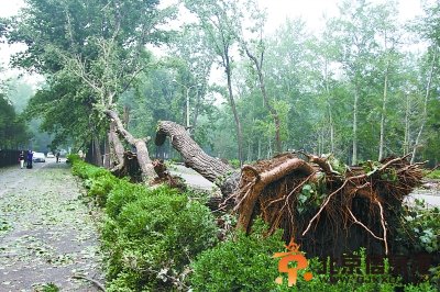 本报讯(记者李嘉瑞)一场大风,把首都机场路北口的20多棵大树连根拔起,堵住了路还砸坏了一辆车。到昨天傍晚,绿化部门的工人们才逐渐将道路清理干净。 据目击者温先生回忆,昨天一早他从首都机场路经过时,看到路两边的大杨树倒了很多。温先生说,这些杨树已经有年头了,树干很粗,一个人几乎抱不过来。昨天下午,记者来到现场时,看到这些被刮倒的大树仍然还在。路西侧,三棵树像多米诺骨牌一样,朝着同一个方向倒下。树枝已经被绿化工人锯掉,但树干仍在。记者看到,这些树都被连根拔起。在路东侧,绿化工人已经把被刮倒的大树用电锯割开,准备分段运走。 绿化工人介绍,大风是从头天晚上的九点多钟开始刮的。附近几百米的区域内,至少有20多棵杨树被风刮倒。工人们说,当时有一辆汽车被砸,但损坏不太严重。倒下的大树堵住了首都机场路,工人们只能把树干锯断,再移到路边。直到昨天凌晨2点多,他们才把路面彻底清理干净。 “这些树的树干都空了。”一位绿化工人指着倒下的树说。他说,种在两侧的行道树,树根扎得不太深。而且这些树的健康状况不好,里面有的已经空了。因此,遇到强风,容易被刮倒。文并摄 J240 阅读完标题为(20多棵杨树被刮倒)的文章后,{www.bjxxg.cn}小编为大家推荐更多相关文章,千万不要错过哦! (责任编辑:北京纪事) |