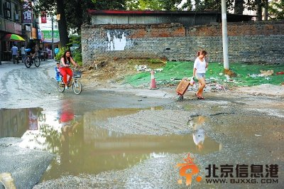 本报讯(记者景一鸣)朝阳区石佛营南段有个路口,南北50米范围内,至少有三处明显的坑洼,走车颠簸不堪,走人难免踉跄。这种情况已经折磨附近居民两年了。最近雨水较多,坑洼路积水后,更加难行。 从红领巾公园出来往北走上大约一二百米,是一个很小的上坡路段,这个小坡的前方就是路面最坑洼的地方。马路中间有两个七八平方米的大水坑,积水老深。几辆原本干干净净的私家车勉强减速从水坑里颠过去后,车身满是泥水,而骑车和走路的人都得绕来绕去地绕着水坑走。 下午5时许,一位拽着拉杆箱的女士来到水坑前,特别发愁。最终,甭管怎么绕,拖地的箱子上还是沾了好多泥。一位家住附近的大爷说,这条路上的几个大坑至少存在两年了。这条路是老人买菜、接送孩子上下学的必经之路。骑电动车的人每次经过这里,注意力都放在躲水坑上,有好几次差点撞着人。此外,这条路到了晚上没有路灯,因此不少路人由于看不清楚,被“坑得”满腿是泥。 附近居民称,他们曾经向路政部门反映此事,但是可能由于这条路的产权属于开发商,所以问题一直没能解决。 文并摄 J168 阅读完标题为(这段坑洼路 雨季更坑人)的文章后,{www.bjxxg.cn}小编为大家推荐更多相关文章,千万不要错过哦! (责任编辑:北京纪事) |