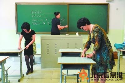 本报记者 贾晓燕 下周二、三、四,全市8.3万名考生将分别走进2845个考场参加中考。昨天起,各考点陆续布置考场。今年,考务工作更加严格,监考老师除像考生一样不能带手机进考场外,其手机也不能带进考务办公室。 部分考生“跑校”考试 昨天下午,记者来到11中考点。在高中教学楼一层的一间教室里,老师们正在贴桌签。副校长张芊丽介绍,该考点共设置20个考场,580名考生参加考试。和高考考场一样,每个中考考场的座位数也是30个,黑板上要统一书写考试科目、考试时间、试卷页数、答题卡张数等信息。 通常,考生可以在本校参加中考考试,但是,今年中考与高中会考同期举行,有的中学需要承担会考的组织考试任务,所以,部分考生需要“跑校”考试。据悉,在11中考点参加考试的除本校学生外,还有来自广渠门中学、115中和崇文门中学的考生。 按照规定,第一场语文考试,考生可以提前40分钟进考点,其它科目提前30分钟进考点。如果送考的家长太多或遇上下雨,11中将允许考生提前1小时进考点备考。“考虑到初三考生的身高,我们还特意挑选高中教室的桌椅来用,并适当调节了高度。”张芊丽说。 考点单设监考老师手机存放处 往年,中考考务规定只要求监考老师不许将手机带进考场,今年的要求更为严格,连分发试卷的考务办公室也不许携带手机进入。为此,部分考点将为监考老师单设一个手机存放处,而考生的手机由送考老师统一存放。 记者注意到,11中的各考场都安装了摄像头,可以进行全方位视频监控。存放试卷的保密室,门和铁皮柜子的钥匙将由考务员和保密员分别保管,提高了安全级别。中考期间,远程电子巡查监控系统覆盖所有考场。近两天,各考点将进行系统联调,以确保考试期间考场内的视频信号实时传输到监控中心、将考试全过程录像并存储。 据悉,每个考点的监考老师并非本校老师,而是在相邻学校间进行了调配。比如,11中的老师要去50中监考,50中的老师要去文汇中学监考,而文汇中学的老师则要去11中监考。 英语考试需提前5分钟入场 6月26日上午,中考将进行外语考试。由于外语科目开考前要进行5分钟听力试音,为避免其他考生受到干扰,迟到考生在8时25分之后就不能进考场参加听力考试了。 据了解,听力考试从8时30分正式开始,8时50分结束,共20分钟。按照规定,如果考生在8时25分至8时45分到达考点,虽然不能参加听力考试,但可以参加笔试,听力考试成绩为零。如果考生在8时45分以后才到考点,则听力考试和笔试都不能参加。 按照考务安排,6月28日至7月1日,各区县进行中考阅卷。7月4日,中考考生可以查看成绩。 图:昨天,在北京第十一中学,3名老师正在布置中考考场。 本报记者 方非摄 阅读完标题为(北京中考考点布置考场 监考老师禁带手机进办公室)的文章后,{www.bjxxg.cn}小编为大家推荐更多相关文章,千万不要错过哦! (责任编辑:北京纪事) |