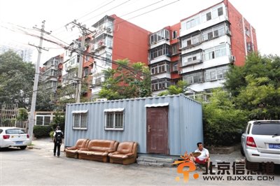 昨日,马家堡清理小区内的集装箱“小屋”,其中一间因所有人生活困难,仍在协商中,暂未清理。新京报记者 高玮 摄