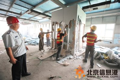 千余平米违建现身韦伯时代中心C座23层楼顶,无人认领暂定无主建筑,政府垫资强拆或将追偿 新京报讯 (记者吴振鹏)西三环人济山庄“最牛空中违建”被曝光拆除后,昨日,海淀区相关部门动用重型吊车,对辖区内另一处百米高的空中违建进行强拆。 这处面积为1629.6平米的违建,处于海淀区韦伯时代中心C座23层楼顶。据现场拆除人员介绍,拆除工作将耗时约一个月,花费近百万,但因该违建目前无人认领,拆除费用暂由政府垫付。 多次查处后工人夜间偷建 据了解,韦伯时代中心C座是由开发商北京魏公元鼎房地产开发有限责任公司于2001年开工建设,地上23层,地下4层,高度87.55米,楼顶中间部分24、25层为设备层。 2012年10月,群众举报该楼楼顶进行违法施工建房。海淀城管对其立案调查发现,该大厦C座楼顶设备层东西两侧的2层钢架结构建筑属违建,面积1629.6平米。 海淀城管相关工作人员介绍,2012年12月至2013年4月期间,城管紫竹院监察队对该楼楼顶违建进行了多次检查,并责令停工,但一直无违建相对人到城管部门接受处理,且施工人员在执法人员离开后仍偷偷施工,形成如今面貌。 城管人员走访周边商户,得知施工方常晚上运料施工,将建筑材料运到楼下,通过滑轮吊运到楼顶。 动用260吨吊车对付高空违建 据海淀城管紫竹院分队副队长李松介绍,除了楼层加建,连东西侧电梯也由原来的23层改造成能直接到达25层。 李松介绍,该大厦类型为商用,主要用于写字楼出租,违建部分的1/4近400平米,已于去年10月出租给多家公司作为办公用房,目前仍在办公。去年12月20日,城管部门曾对承租单位送达《腾退通知书》,要求在2014年1月31日前腾空该建筑物,但承租企业并未予以理睬。 李松介绍,去年海淀区政府批准对韦伯时代中心C座楼顶违法建设予以强制拆除,所以,海淀城管部门首次启用260吨重型吊车,进行高空作业拆除。 对于之前的“最牛违建”为何未用吊车施工,李松表示“最牛违建”属自主拆除,且钢结构少,而韦伯时代中心的这处违建,钢板、钢材较多,如果将其切割后再通过电梯运送,不仅会拖慢工期,增加拆除工程的危险系数,还容易对电梯造成损坏,影响到其他市民对电梯的使用。 焦点 1 谁建的这两层违建? 在城管查处此处违建时,一直没有相对人接受调查处理,而昨日强拆时,这处违建仍无人认领,属于“无主”建筑。 城管部门介绍,2012年12月,海淀城管执法监察局发布公告,督促此处违建相对人到城管部门接受调查询问,进行陈述和申辩,或自行拆除上述违法建设,但无人前往。城管曾多次到韦伯时代中心顶层违法建设处张贴告示书,也曾尝试联系建设人均无果。 2013年10月,一名自称为鸿炜的人到城管紫竹院执法监察队,称此处违法建设是通过北京市二中院拍卖买的,不能认定违法建设,城管要求其提供有关证明,至2013年11月中旬都未能提供。后海淀区城管部门前往二中院调查,证明根本没有此事。 到底是谁出资建的这处违建,至今是谜。所以此案处理,是按无法定建设人、所有人和管理人处理的。 焦点 2 拆除费用应由谁承担? 据现场拆除施工人员介绍,此次拆除花费预估近百万元,仅重型吊车的租金就达每天1.5万元。 如此高昂的拆除费用,究竟应该由谁来买单?紫竹院城管分队副队长李松说,他暂时还不知此次拆除的具体费用是多少。因此处违建在公示过程中一直无人认领,拆除违建的费用只能暂时由政府垫付。 李松补充,违建拆除应全由违建主人承担,但对于无主违建的拆除费用谁来承担,法律上的相应规定还是空白。目前,此类案例还没有追偿先例,基本上都是由政府出资,至于这种垫付的形式是否合理,他没给出正面答复。 ■ 现场 吊运钢架至地面需5分钟 昨天是拆违首日,早上7点,城管、公安等人员已在楼四周拉上警戒线,并派专人值守,防止施工中高空坠物伤人。 25楼的违法建筑内部,地上满是水渍,堆放了很多方形的建筑板材。整个违建的两层楼,均是纵横交错的钢架结构,外围已经铺设了两层防护网,以便安全拆除。 紫竹院街道办一名工作人员介绍,违建内除了已出租的办公区,其余部分已基本完成前期的内部清理工作,水电、消防设备均拆除。 昨日,其中一家热力公司内有近10人在办公,一名员工称,此前曾有城管前来告知违建,办公室即将拆除,“一开始搬进来并不知道是违建,我们会配合城管的工作。” 拆除施工方负责人介绍,此次施工难度极大,除了涉及高空作业外,违法建筑内部的钢结构非常多,需要进行热切割,才能通过吊车运送到地面。“要在一个月内拆除完毕,得雇上百人轮班作业。” 昨日上午10时许,重型吊车开始吊运作业,巨大吊臂缓缓升起,直达约百米高的楼顶,待工人吊装好钢架或彩钢板后,再缓慢吊运至地面,为保证安全,这一吊运过程费时约5分钟。施工方负责人介绍,虽然吊车可承重260吨,但出于安全考虑,每次运输的物料不会超过1吨重。 ■ 相关新闻 马家堡清理“集装箱小屋” 10个住人集装箱已被清理运走,另3个仍在协商 今年5月,新京报曾报道马家堡西里小区现住人集装箱,丰台区城管曾认定为违建。6月23日,马家堡街道联合城管对小区内的集装箱进行集中清理,当天清理掉10个集装箱,另外3个仍在沟通协调中。 这些造价万元,可移动的集装箱从2009年便出现在小区内,集装箱一般用于居住。今年5月,媒体曝光小区集装箱住人后,马家堡街道和丰台区城管多