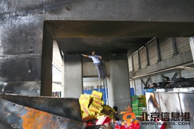 起火仓库往东南方向100多米,共有数家饮料批发仓库,他们被告知10日前须搬离。新京报记者浦峰摄 8日,地铁13号线西直门至大钟寺间高架桥下,工作人员在火灾地点检测损毁程