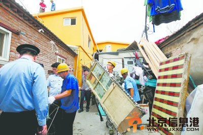 京报网讯(记者 金可)昨天上午,西城区大栅栏小安澜营头条6号院内一处群租违建二层楼开始拆除。这栋胡同深处院子里的黄色二层小楼远看十分扎眼。此前,房东还在院门口挂上了“7天”连锁酒店的招牌,在前门地区招揽住店旅客。 小安澜营头条胡同非常狭窄,6号院位于胡同中间位置。小院里有十余间平房,这座两层小楼就位于院子正中,因为加盖了二层,房主又贴着墙搭起一道楼梯,使院里本就狭窄的小路挤得只能侧身通过。大栅栏城管在两个月前的排查中,发现了这处违法群租房。当时二楼的一半已经被打出隔间群租房并出租,另外一半正在施工,被紧急叫停。 据介绍,这处院子是公产房,但出租人多次转手。这处违法群租房建在院内两排紧挨着的10间公租平房楼上,将近380平方米。一层是砖混结构的合法建设,二层是违建轻体彩钢房。城管负责人介绍,该楼的上下两层实际上都进行了违法改建。二楼的违建呈L形,上楼梯左拐的一片违建内打出了16个隔间。下面原本的公产房内也被房东改了格局,打了隔断。在楼东侧,房东还违法搭建了另外三所违建,也用于出租。其中的一处违建内本来也要再打十几个隔间,但被执法人员紧急制止。拆除前,群租房内共有10户32人居住。 违建内脏乱不堪,隔断房间都是超薄的轻体材料,使劲一推直晃。楼外用铁架子搭了一个简易楼梯,湿滑不堪,现场不时有人在楼梯上滑倒。每间隔断房也就5至8平方米大小,门脸破旧,所谓门锁就是一把薄薄的铁片。可别小看这些格子间,一位正在搬家的房客说,自己的8平方米小房月租高达2000元,这栋违建群租小楼每月总收入能达到6万元左右! 周围居民说,这栋两层小楼是不久前突然刷成黄色的。远远一看,还真和“7天”、“速8”等连锁酒店的外观挺像。此前房东还在门口挂上了“7天”连锁酒店的招牌,在前门大街招徕旅客。除了外出拉散客,房东还将大量隔断房租给了附近卖菜、卖早点、做小买卖的生意人。 城管负责人告诉记者,大栅栏地区为平房区,历史悠久,名人故居多、胡同典故多,游人喜欢在胡同里游览,不少外来人员也选择在此落脚,这也是造成这一地区群租、违建较多的原因之一。仅今年上半年,相关部门就拆除违建400多平方米。 昨天上午8时许,建筑工人开始对房内进行清理,随后进行拆除。此次,将把二楼违建和东侧几间违建房一道拆除。大栅栏街道办事处综治办主任罗文介绍,在大栅栏地区,像小安澜营头条这种严重的违建群租楼还是首次出现。这处违建因为挨着旁边的住户太近,拆除难度非常大。工人只能在房内将隔断拆开,然后一块块吊下来,预计本周内基本拆完。本报记者 吴镝摄 阅读完标题为(大栅栏拆除违建群租山寨连锁酒店)的文章后,{www.bjxxg.cn}小编为大家推荐更多相关文章,千万不要错过哦! (责任编辑:北京纪事) |