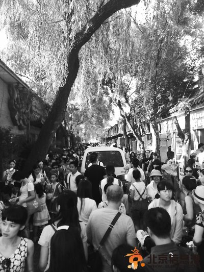 近日,市民张女士向本报反映,南锣鼓巷主街由南向北总有车辆穿行,造成人车混行,交通秩序非常混乱,存在一些安全隐患。她希望有关部门能够关注南锣鼓巷的交通秩序问题。 7月31日晚上,笔者来到南锣鼓巷主街上,南锣鼓巷宽约8米,长786米,呈南北走向。笔者沿着南锣鼓巷走了一趟,确实发现有一些车辆在熙熙攘攘的人群中缓慢前行。其中一辆白色金杯车由南向北穿行,因为人多路窄,这辆车在众人簇拥下缓慢往前行,其间遇到了几位骑自行车的人,因为没有可以错车的地方,车子被堵住了,车辆四周都被人群包围着,游客稍有不慎就有可能被车撞着。一位操着南方口音的游客说,这么多人连走路都费劲,还开进来一辆车,真是太难走了。 此外,南锣鼓巷两侧的商铺门前,有些店主为了图方便,直接把自家的自行车,三轮车等停放在店门口,也挤占了原本就不宽的道路,使得游人行走极为不便。 笔者随后从南锣鼓巷居委会了解到,南锣鼓巷规划中是要改建成步行街的,但因种种原因,至今也没有彻底改成步行街。东城区交道口街道工作人员说,南锣鼓巷现在是限行,并不是所有车辆都可以进去,只有拥有相关出入证的车辆才能驶入。 南锣鼓巷作为一处旅游景点,进入暑期以来,每天游人如织,既有全国各地的游客,也有外国友人,但车辆在狭窄的巷子中穿行,不停地鸣笛,不仅给游客带来不便和安全隐患,也有损南锣鼓巷的旅游形象。希望有关部门能尽快推出相应管理措施,缓解人车混行的现象,也让这一旅游景点更受游客的欢迎。 通讯员 郑清源 阅读完标题为(南锣鼓巷游人如织,车像蜗牛缓慢穿行 人车混行有隐患)的文章后,{www.bjxxg.cn}小编为大家推荐更多相关文章,千万不要错过哦! (责任编辑:北京纪事) |