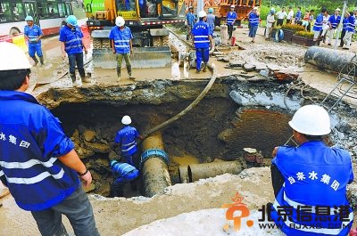 昨天中午12时许,西三旗新都环岛十字路口西南角地下自来水管突然爆裂,一时间路面上出现了大量积水。除交通受影响外,附近多个小区同时出现停水现象。事发后,自来水集团抢险大队迅速赶到现场开始抢修。为保障居民用水,昨天下午5点30分,抢修人员对漏点做了临时处理。今天上午记者从相关部门了解到,在昨晚用水高峰后,抢修人员又经过1个小时的努力,将坑下的管道更换完毕,周边小区供水已经恢复。今天凌晨,十字路口路面恢复工作也已完成,今天早高峰的行车不受影响。 现场 十字路口汪洋一片 “新都环岛水管破了!”昨天中午1点开始,就有网友发微博在网上求助,还晒出了现场的照片。从照片上可以看到,十字路口西北角的自来水井正在不断冒水,西南角的井口也有大量积水涌出。十字路口此时一片汪洋。 昨天下午,记者到达现场时,该路段的积水很多,冒出来的水和路上的土混成了泥汤,车辆经过这个十字路口时均减速慢行。非机动车道路面成了泥塘,不少骑自行车的人不得不把车扛上了便道。 “事发时间应该是在快1点的时候,水冒得特别凶!”一位保洁人员说,路口的西南、西北两个角当时都有积水涌上路面,水上来的时候没有臭味,看着也挺干净,所以她推断应该是自来水管出了问题,随后便赶紧打电话报修。 抢修 烈日下寻找漏水点 昨天下午1点多,自来水集团抢险大队的车便开到了现场,除了应急指挥车辆、抢修车辆外,后面还跟着两台挖掘机。顶着烈日,几十名抢修人员一刻不敢耽搁,趟着泥水开始寻找漏点。 在下午2点以前,管道爆裂的位置被确定下来,就在十字路口的西南角。抢修人员利用挖掘机在路面上挖开了一个大约5平方米见方的坑,坑内积水几乎冒顶。几台水泵同时作业,将坑内的水往外抽。 到昨天下午4点多,几名抢修人员下到了两米多深的坑内,检查破损的自来水管线。“现在还不知道什么原因造成管道破裂,不过看现在的情形,应该把这管道都换了才行。”抢修工人张师傅说。 到晚高峰前,用来替换破裂管线的新管道一直放在路边,却没有放到坑里,而坑内的管道已暂时被铁圈箍住。抢修人员解释说,管道肯定是要换的,但是直接换的话时间会比较长,为了不耽误周围居民用水,才用了临时的手段,等过了用水高峰,再停水换管。 影响 十几辆供水车进社区 从昨天中午1点多开始,十字路口东侧和北侧路段,多个小区都出现了停水现象。有些居民午饭吃得比较晚,都称饭做了一半就没水了。昨天下午,为了在抢修期间让居民们用上临时水,十几辆供水车也分批进入了周边的社区。 路口北侧的枫丹丽舍小区就是停水小区之一,下午不到5点半,社区东门内的长廊里,不少居民都在说停水的事儿。人们身边带着锅、水桶等各种工具等待供水车的到来。 除了停水,管道爆裂还对路面行车构成影响,在昨天下班晚高峰时,建材城西路西向东方向,建材城中路南向北方向,交通十分拥堵。其中西向东方向车队已经排了1.2公里,从事发地点一直排到了育新地铁站附近。 本报记者 景一鸣 文并摄 J168 阅读完标题为(管道修复 今晨一路畅通)的文章后,{www.bjxxg.cn}小编为大家推荐更多相关文章,千万不要错过哦! (责任编辑:北京纪事) |
