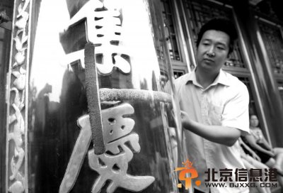 工作人员正在用除尘器为楹联防尘罩除尘。京华时报记者范继文摄