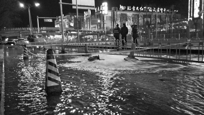京报网讯(记者张硕)昨天,木樨园桥南北可谓“水火两重天”。傍晚时分,位于木樨园桥西北角的百荣世贸商城大火还没扑灭,而东南角辅路上的井水又流成了“河”。据自来水集团维修工人说,这口井是消防井,由于灭火需要,不少消防车在这里取水,可能是阀门损坏,导致井水外溢。 昨晚7时许,记者赶到现场时,位于木樨园桥南约200米、南向北的辅路上,一口井正在往外冒水。自来水集团的工作人员以警戒线圈起了现场,并封闭了辅路。冒水的井口被井盖和一个红色消防栓压住,“否则水能喷三四米高呢。”维修人员说。井水在辅路上形成了一条约50米长的“小河”,水深没过脚面。 自来水集团工作人员正在现场紧急抢修。据他们介绍,晚6点左右,有市民向他们反映这口井跑水了。工作人员到场后查看发现,这口井是消防井,在扑灭百荣世贸商城大火的两天时间里,多辆消防车来这里取水,可能是阀门损坏导致跑水。昨晚11时30分,损坏阀门已经更换完毕,消防井恢复正常使用。为了防止路面结冰,维修人员还在周边道路上投撒了不少融雪剂。 文并摄 J233 阅读完标题为(阀门损坏 水井跑水)的文章后,{www.bjxxg.cn}小编为大家推荐更多相关文章,千万不要错过哦! (责任编辑:北京纪事) |