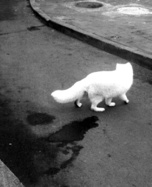 全身雪白的它在街上闲庭信步。