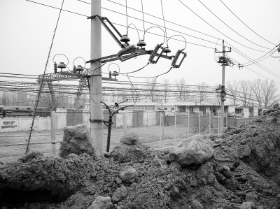 站在土堆上高压线触手可及。