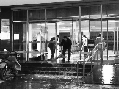 本报讯(记者张硕)路过小马厂路南侧的“北京市西城区职业介绍服务中心”门口,一位姑娘差点滑一跤,她脚下的人行道上结了一层薄冰。原来就在昨天下午,这里的暖气管破裂,大量的水流到了人行道上冷却后结冰。 昨天傍晚5点,几名工作人员正在往外扫水,距离服务厅门口较近的地方已汇成小河,流向几米外的下水道口。而在下水道口外,流水已经结冰。 记者看到,数百平方米大的服务中心大厅里,地面上残留着大约1厘米深的水,员工们齐心协力,喊着号子用扫帚将水往门外“推”。工作人员说,周日下午这里休息,但两点多的时候,有值班人员发现里面的一根小腿粗的管道往外跑水,很快整个屋子里充满了积水。 服务厅的地下一层是一个市场。市场的大部分地方没有漏水,但办公室和少数摊位被滴水困扰着,卖粮食的商户部分白面被泡,赶紧将麻袋转移到干燥的地方。另一处卖布料的小摊,用大桶接滴下来的水流。 文并摄 J233 阅读完标题为(暖气管破裂 人行道结冰)的文章后,{www.bjxxg.cn}小编为大家推荐更多相关文章,千万不要错过哦! (责任编辑:北京纪事) |