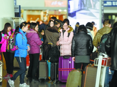 昨天,首都机场进出港旅客量达到节前最高峰。受过节返乡和出游的影响,出港旅客明显增多,旅客携带的行李量也多于平日。 李继辉摄 昨天是腊月二十八,也是此前铁路部门预计将出现节前最高峰的日子。果不其然,客流高峰如约而至,昨天,北京四大火车站一天共发送旅客53.9万人次。北京铁路局昨日发布了初四开始的节后加开临客方案,包括济南、石家庄等多趟中短途旅游、探亲路线。此外,目前已经增开的每天早高峰廊坊到北京的G9002次、沧州到北京的G9004次,3月1日起到3月19日继续增开。 节后临客方案出台 据北京铁路局统计,昨日北京站、北京西站、北京南站、北京北站四站共发送旅客53.9万人次,达到节前最高。其中,北京站发送旅客17.2万人次,南站上车11.8万人次,西站发送23.5万人次。这也是西站开行高铁以来,春运单日发送量最高的一天。 西站负责人介绍,在高铁开通前,西站每年春运的单日发送量都屡创新高,但自从有了高铁,由于超员量远低于从前,单日最高发送量出现下滑。随着路网建设的发展,图定列车和加开列车数量都在不断上升,今年西站春运的单日最高发送量也由此达到了23.5万人次。 北京铁路局昨天同时公布了节后开行临客方案。从2月22日正月初四开始,北京铁路局将增开济南西、沈阳北、白城、廊坊、石家庄等方向旅客列车。多趟方向均为中短途旅游、探亲集中的目的地。 2月22日至3月1日,增开北京南至济南西G4287次列车;增开北京南至济南G4523次列车。2月22日至2月27日,增开北京南至济南G4285次列车;2月22日至3月8日,隔日增开北京至沈阳北K4017次列车;2月22日至3月10日,隔日增开北京至白城K4409次列车;2月20、21、23、24、26、27日,增开北京西至石家庄G9051/2次、G9053/4次列车。 此外,3月1日至19日,北京南至廊坊G9001/2次列车和沧州西到北京南的高铁G9004次列车继续增开。G9002次廊坊站7时25分始发,当日7时46分终到北京南站。G9004次沧州西站7时23分始发,当日8时21分终到北京南站。 热门余票还有不少 在一家车行工作的曾先生告诉记者,自己一开始没买到火车票,本打算和朋友拼车回东北老家,但朋友临时有安排可能要绕路。以为回家无望的他昨天突然刷出了回老家的车票,欣喜若狂,连称“没想到”。 昨日18时,记者在12306网上看到,今天到哈尔滨的32个车次中,21趟车尚有余票。从凌晨3时许到中午12时前的10趟车全都显示为“可预订”状态,高铁、动车中显示有一等座、二等座余票,普速列车中甚至还有硬卧余票。此外,成都、重庆、长沙、沈阳、上海等热门方向列车都有大量余票。尤其是开往上海、广州等地的高铁列车,票量充足。 铁路部门分析,出现大量余票一方面是因为有不少人退票,另外加开的大量临客列车,也为旅客提供了更多票源。本周一、二还是工作日,不少回家过年的人还要站好最后一班岗,网上尚存大量余票,让很多手中车票不理想的旅客有了更多的选择。 铁路部门提示广大旅客,目前尚有部分退票,有出行计划的旅客可通过铁路12306网站、电话、车站、代售点窗口和自助售取票机等方式查询、购票。 带着北京特产回家 昨天的北京西站,不少回家过年的人都大包小包提着各种北京特产。烤鸭、稻香村京八件出现在回乡人手中的频率最高,红彤彤的包装老远看着就喜兴。 新年回家,不少年轻人带起了“新年货”。“我给老妈买的iPad,给老爸买的大屏幕新手机。”旅客郑敏娜是个活泼的河南姑娘,她在公主坟的手机卖场工作,今年回家特意给家人带了自己熟悉的电子产品,“爸爸年纪大了,眼神不好,给他换个大屏手机,再帮他把字体设大一点,用起来方便些。” 铁路警方建议旅客将行李化繁为简,变小为大。比如将多件小行李装到大行李箱中,或提前打包托运、快递,以免在旅途中丢失遗落。 相关新闻 铁警查获 三万余件违禁物品 本报讯(记者 金可 通讯员 庞贺雷 王海蛟)北京铁路警方通报,截至2月14日,春运以来北京各大火车站共查获各类违禁物品14904起、30548件,其中,以易燃气罐类最多,如ZP油等,此外是电击器。 北京铁路警方已全面启动“猎鹰”、“铁鹰”、“治安整治”等专项行动,全局近7000名民警一律停休。目前,全局共投入3600多名安检力量,确保行李物品件件过机。同时,为全面落实车站反恐工作,投入3800名警力加大武装巡逻,严密安检查危,强化高铁、铁路沿线和列车上的安全防范工作。 阅读完标题为(铁路四站1天送客53.9万人 春运昨日进入最高峰)的文章后,{www.bjxxg.cn}小编为大家推荐更多相关文章,千万不要错过哦! (责任编辑:北京纪事) |