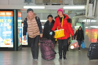 ④河北来京务工一家人走出火车站,神情愉快。记者赵思衡 张沫摄