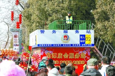 龙潭庙会在人流密集处设立服务站,为游客提供各种警务服务。摄影 孙山